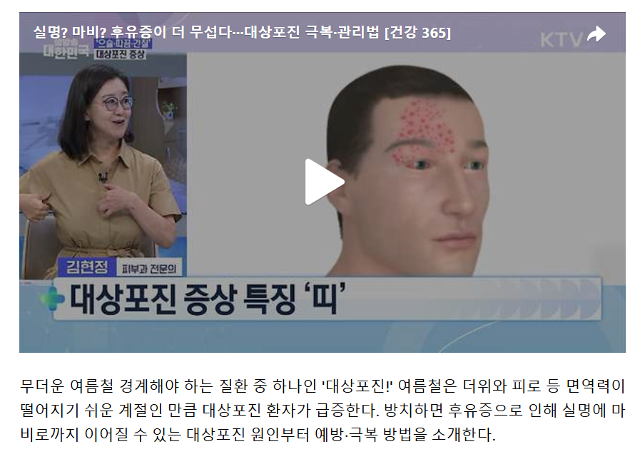 단순한 감기나 더위 때문이 아니라 ‘대상포진’일 수 있습니다.