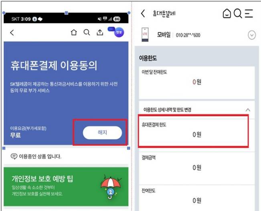 소액결제 한도 설정